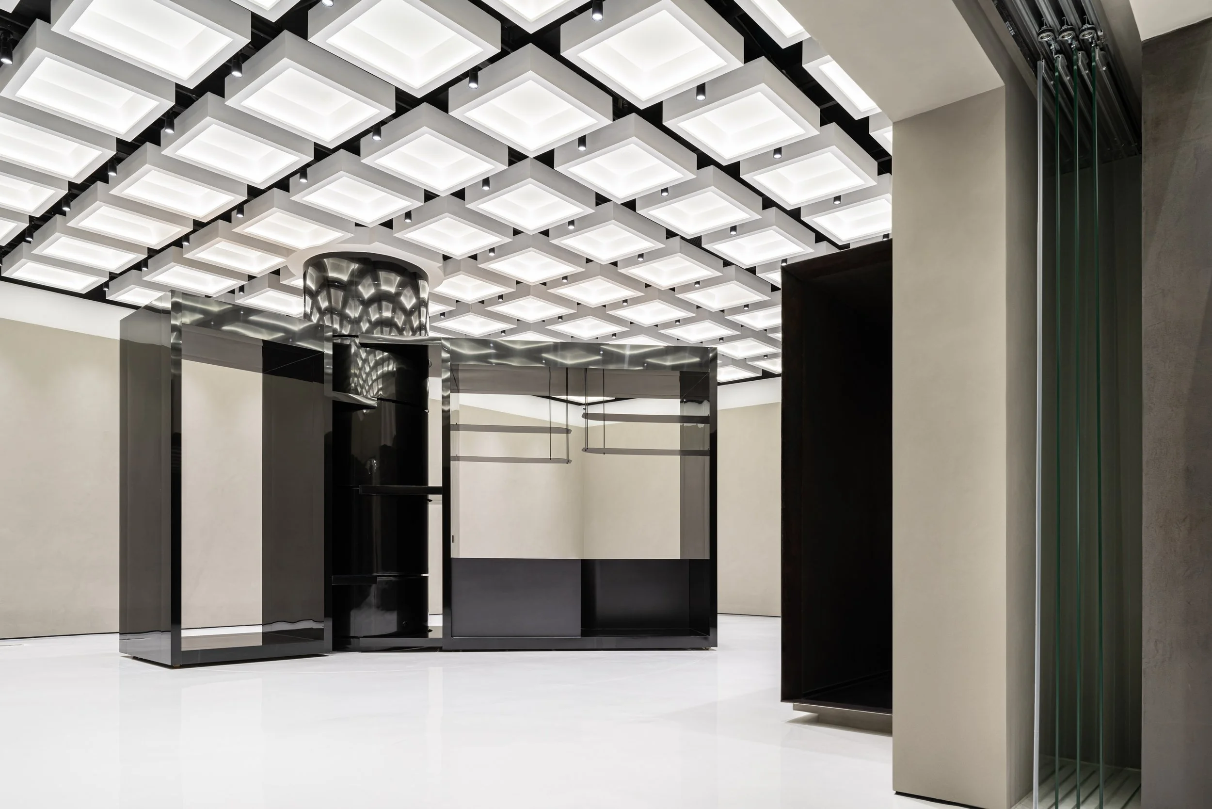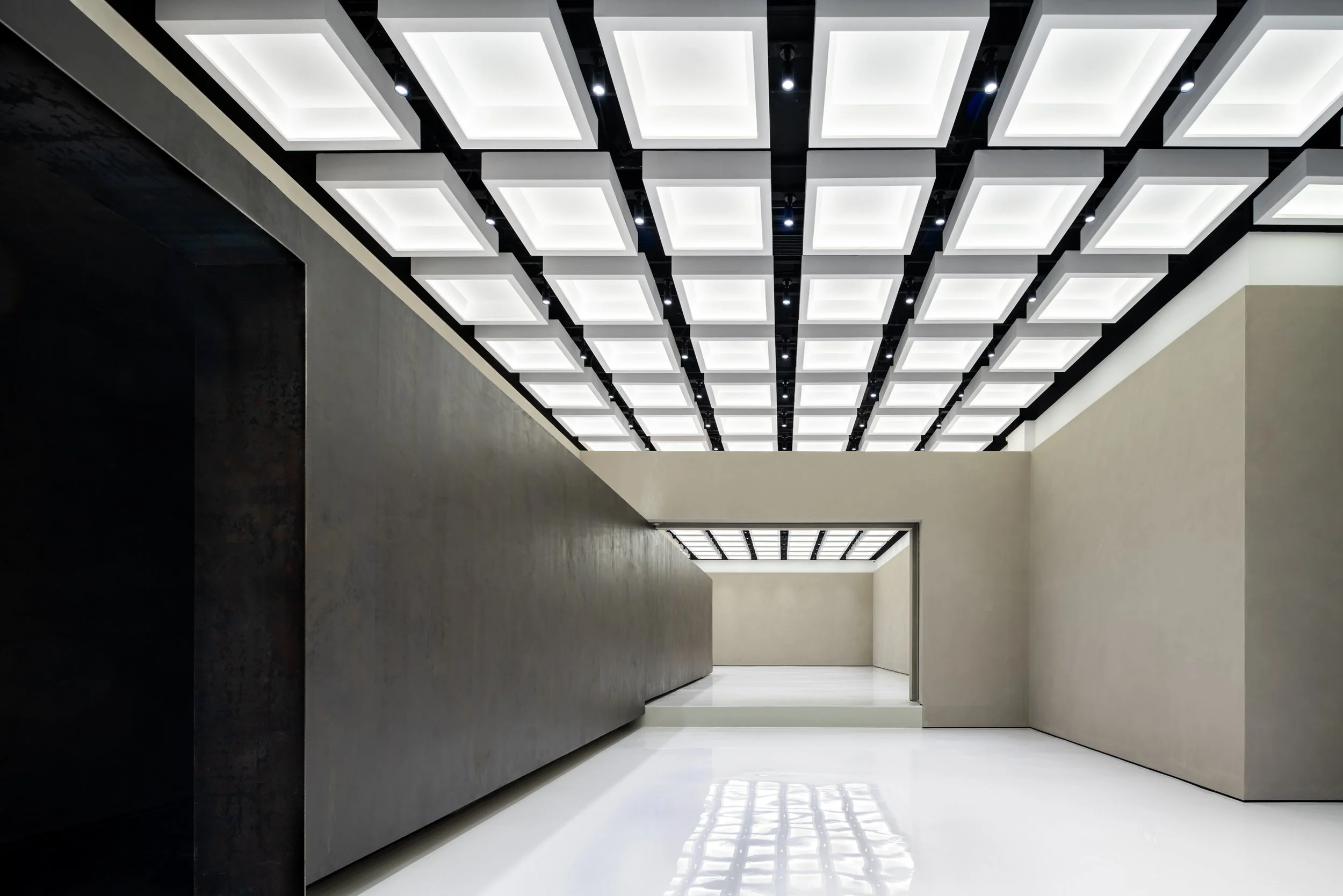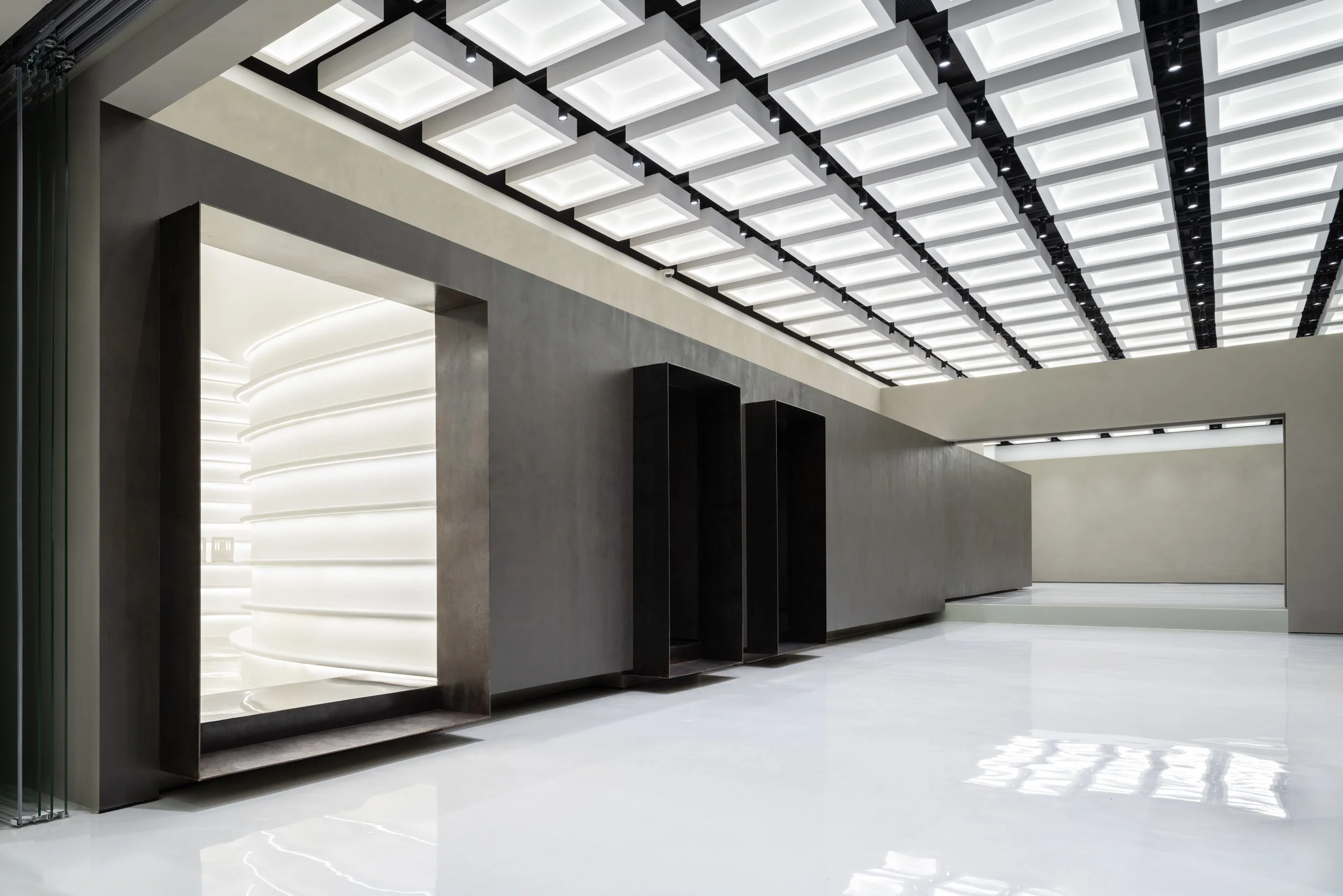 2022: Golong Wormhole is an experimental space for events and exhibitions at the Golong Holdings headquarter building in Hangzhou, China. The space allows for flexible programming, while maintaining a consistent visual language that represents the inquisitive and transformative brand culture of Golong, a beauty and wellness conglomerate.